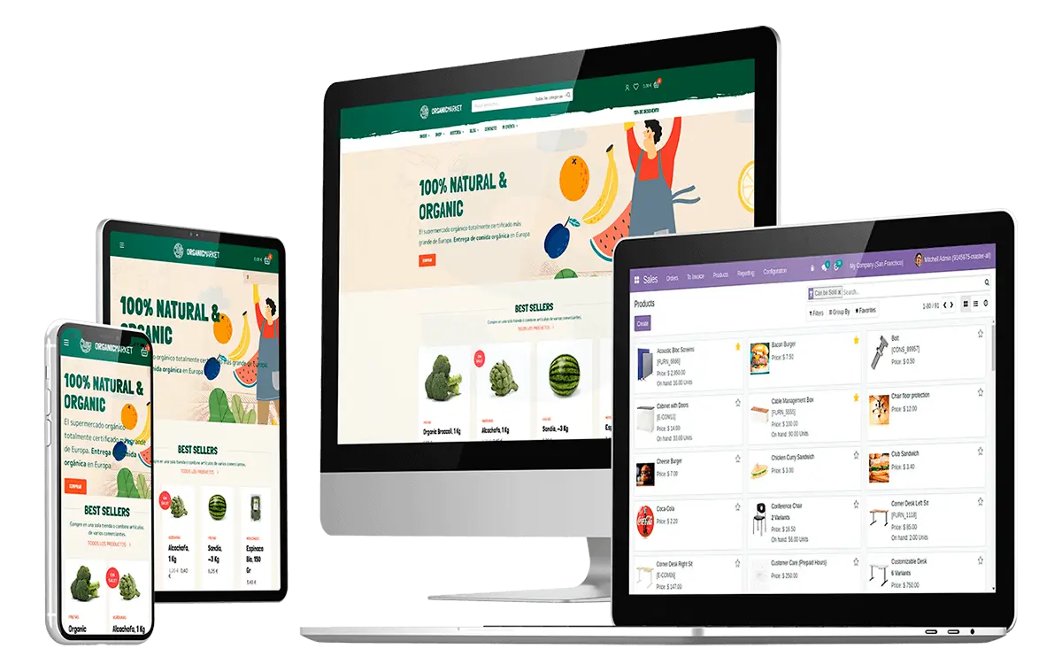 Desde redes sociales a notificaciones push y chat en vivo, Odoo está completamente equipado con todo lo que necesitas para impulsar tu actividad en línea.